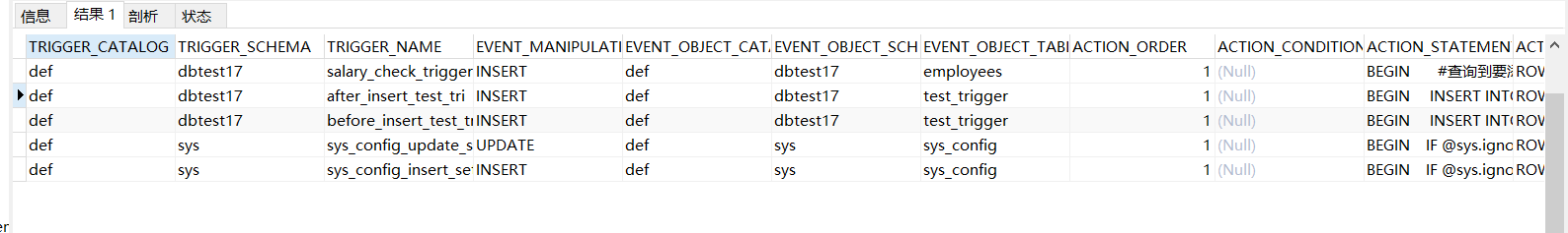 方式1:查看当前数据库的所有触发器的定义
