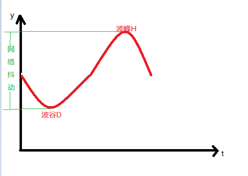 实际的网络质量如上图,相邻两个数据包到达的时间差值都不相同,那么波峰H假设20ms,波谷D为5ms,那么网络抖动就是20 - 5 = 15ms。