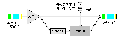 GTS与CAR一样,均采用了令牌桶技术来控制流量。GTS与CAR的主要区别在于:利用CAR在接口的出、入方向进行报文的流量控制,对不符合流量特性的报文进行丢弃;而GTS只在接口的出方向对于不符合流量特性的报文进行缓冲,减少了报文的丢弃,同时满足报文的流量特性,但增加了报文的延迟。