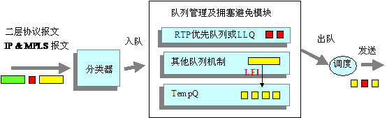 2)拥塞管理与拥塞避免技术:WRED、PQ、CQ、WFQ、CBQ等队列技术对拥塞的报文进行缓存和调度,实现拥塞管理与拥塞避免。
