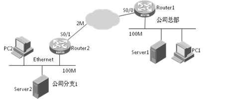 如下图所示,当公司分支1向公司总部以100M的速度发送数据时,将会使Router2的串口S0/1发生拥塞。