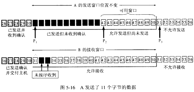 (3)当发送方A发送的数据经过一段时间没有收到确认(由超时计时器控制),就要使用回退N步协议,回到最后接收到确认号的地方,重新发送这部分数据。