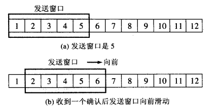 图(a)是发送方维持的发送窗口,它的意义是:位于发送窗口内的5个分组都可以连续发送出去,而不需要等待对方的确认,这样就提高了信道利用率。