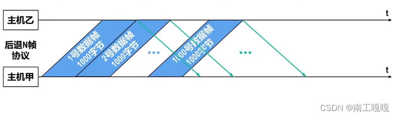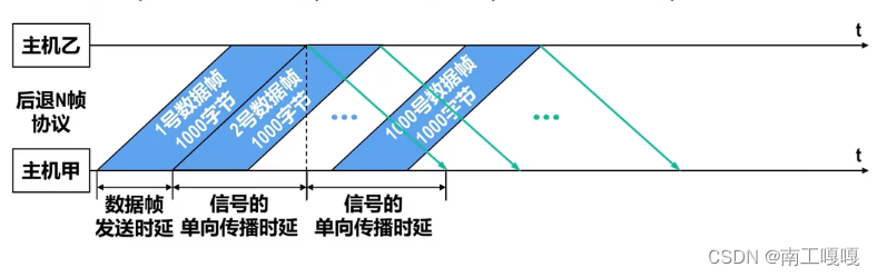 - 发送窗口尺寸为1000,一个数据帧长为1000字节 = 8000b,要发送1000个数据帧。