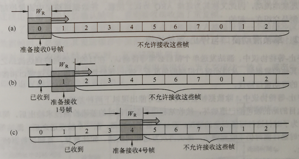 接收端收到数据帧后,将窗口向前移一个位置,并发回确认帧,若收到的数据帧落在接收窗之外,则一律丢弃。
