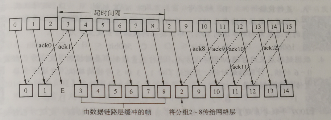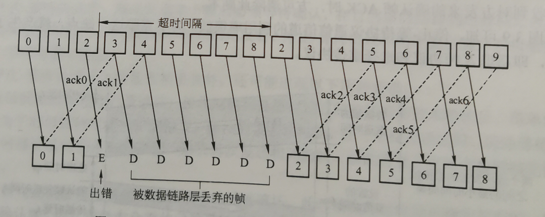 图19-4 GBN协议的工作原理:对出错数据帧的处理