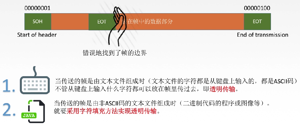 透明传输是指不管所传数据是什么样的比特组合,都应当能够在链路上传送。因此,链路层就“看不见”有什么妨碍数据传输的东西。