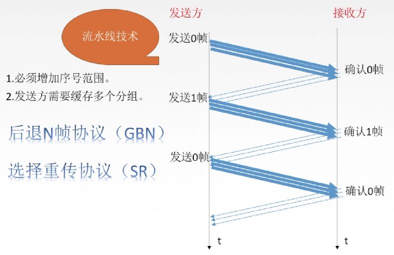 - 偶尔捎带:通信是双工通信,发送方也可以是接收方,接收方也可以是发送方;当接收方需要转变为发送方时,在发送数据的时候,可以将确认信息同时打包发送给之前的发送方。