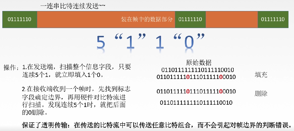组帧的四种方法:字符计数法,字符(节)填充法,零比特填充法,违规编码法