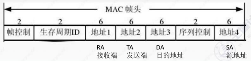 - DIFS(分布式协调IFS):最长的IFS,优先级最低,用于异步帧竞争访问的时延。