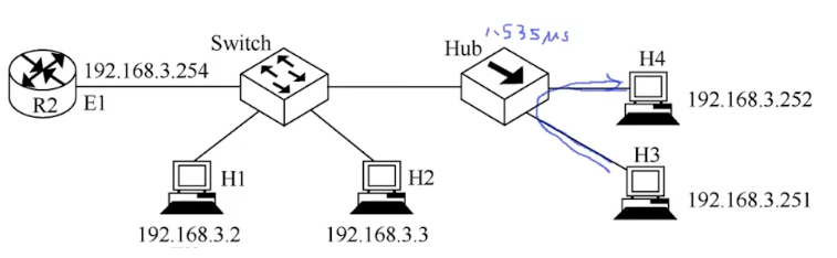 若 Hub 再生比特流过程中,会产生 1.535us 延时,信号传播速度为 200m/μs,不考虑以太网帧的前导码,则H3 和 H4 之间理论上可以相距的最远距离是
