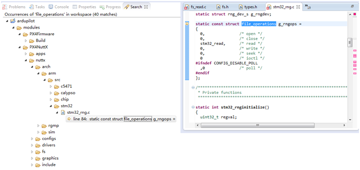 于是搜索file_operations,因为知道px4的底层驱动的路径,于是直接进来看stm32的驱动文件