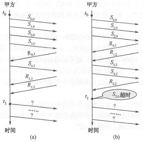 从乙方在t1之前发送的最后一个报文R3,3可知甲发的0,1,2号已成功被乙方收到。