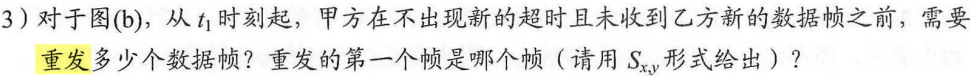 b)主机甲在给主机乙发送数据帧并捎带确认时,只能对按序到达的最后一个数据帧(第二问是R1,3)进行确认,即确认号为1+1=2。