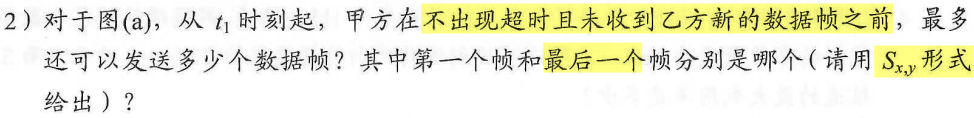 【解析】从t1时刻起,甲方最多还可以发送5个数据帧,其中第一个帧是S5,2,最后一个数据帧是S1,2。