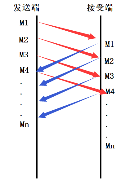我们现在将多个分组连续发送过去,接收方会采用累计确认的方式,在接收到几个分组后,对按序到达的最后一个分组发送确认,这这时候就表示:到这个分组为止的所有分组都已经正确收到了。