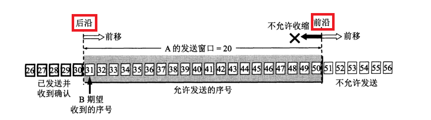 发送窗口的位置由窗口前沿和后沿的位置共同决定: