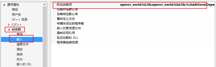 添加附加依赖项就是添加所有的lib文件路径,这些lib文件都是在前面那个库目录里面保存的。由于OpenCV2和OpenCV3之间的不同,相应的附加依赖项也就不同。