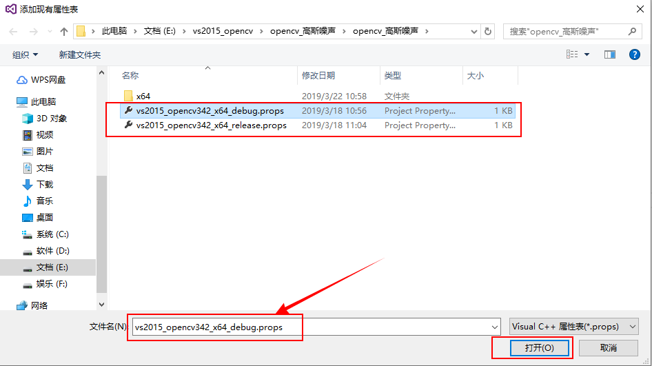 为了方便使用,我们还可以通过添加属性表的方式,配置OpenCV的属性,属性表就是props文件。每次新建项目之后,只需要将属性表放到项目路径下,并添加到项目中就可以使用了,而不需要重复去配置OpenCV的属性。避免了重复去配置OpenCV的属性和切换编译模式得到麻烦,自行选择。
