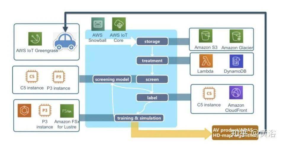 如图是国内自动驾驶公司Momenta基于亚马逊AWS建立的系统架构实例图: