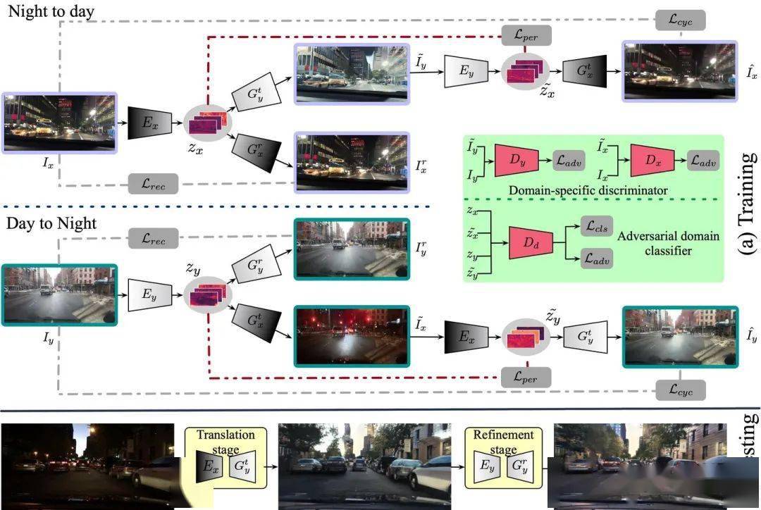 7)模拟仿真:模拟仿真需要对车辆/行人、传感器、交通环境和道路环境建模,有时候无法直接获得逼真的合成模型,特别是实际发生的交通事件,有时候不得不采用真实传感器数据来建模合成。下图是GAN-based的雨夜图像合成方法。