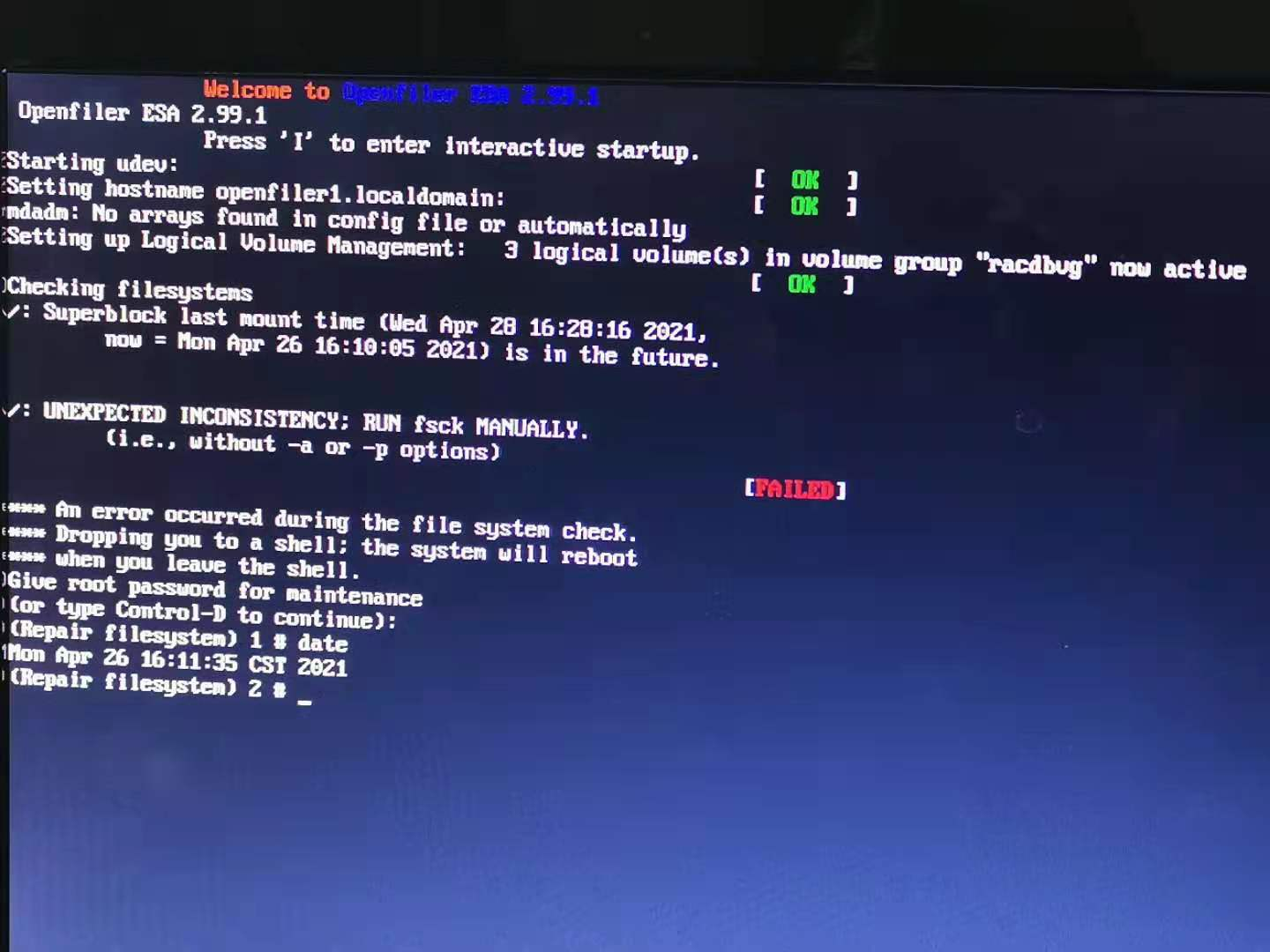 以上就是仁爱水壶最近收集整理的关于Linux OpenFiler 启动报:UNEXPECTED INCONSISTENCY: RUN fsck MANUALLY错误的全部内容,更多相关Linux内容请搜索靠谱客的其他文章。