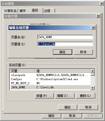 1)在系统变量里新建JAVA_HOME变量,变量值为:C:Program Files (x86)Javajdk1.8.0_71(根据自己的安装路径填写)