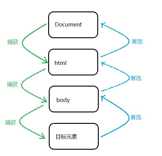 事件处理机制的三个阶段:捕获、目标、冒泡