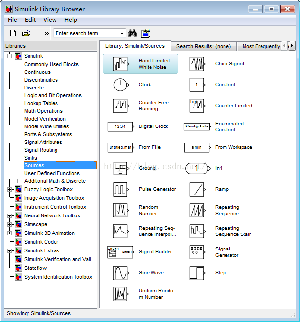 Sources是信号源库;包括正弦波、方波、常量、随机数等;