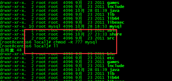 输入命令:chown -R mysql:mysql /usr/local/mysql/