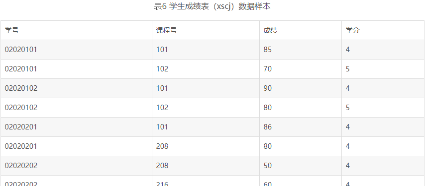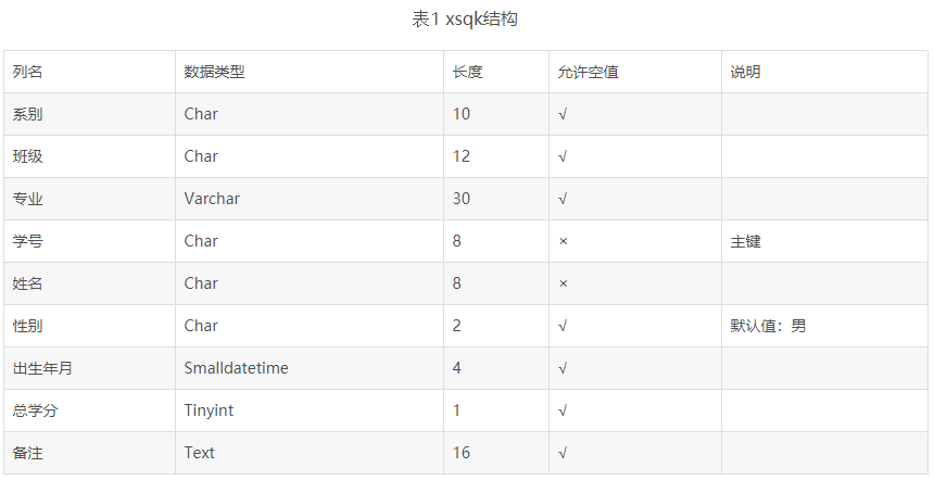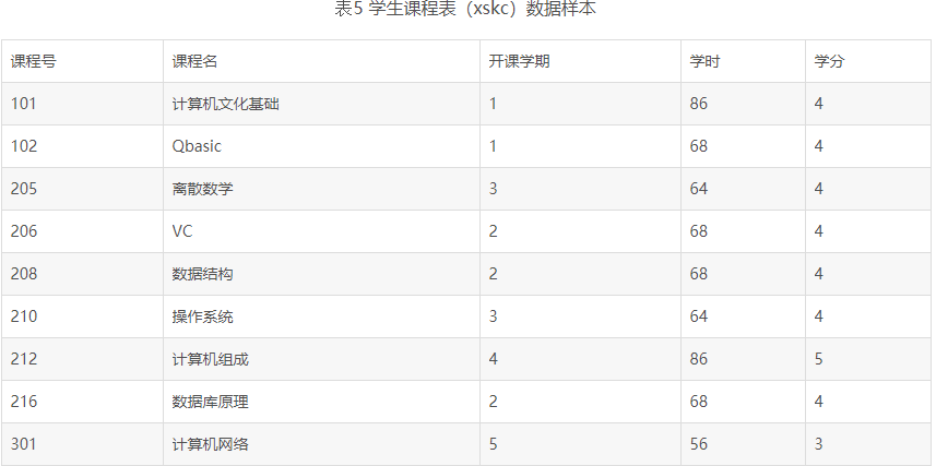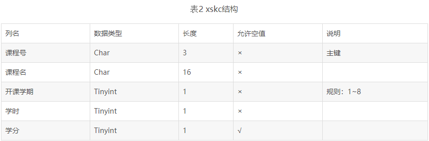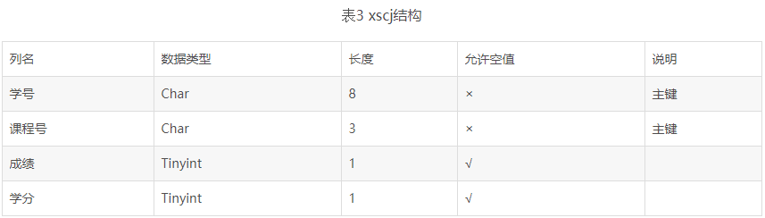 学生数据库由三张表组成:xsqk、xskc、xscj,各个表的结构如下: