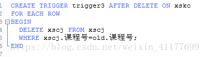 2、创建触发器trigger3,实现当删除学生课程表中某门课程的记录时,对应学生成绩表中所有有关此课程的记录均删除。