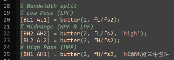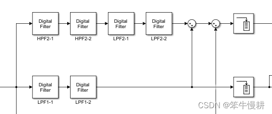 在这个子系统内部包含一系列的处理(以下所示为其中一部分),其中有若干个滤波器,这些滤波器的参数是依赖于上节所示的子系统的基本属性参数的,即是说,需要在这些顶层参数确定后进行计算而得。最原始(但是很低效)的方式当然是,在顶层属性参数确定后计算这些滤波器的参数,然后以常数的方式对这些滤波器进行参数配置。