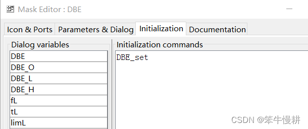 细心的小伙伴可能注意到了,这个初始化脚本DBE_set.m用到了fL、fH等参数,它们也同时出现在上图的左侧,那这些参数从何而来呢?这些参数可以直接来自顶层的初始化(即从Matlab workspace获取),但是,将所有各子系统的参数都统一到最顶层处理并不是一个明智的做法(特别是对于复杂的大系统的开发来说)。事实上,其中个别参数比如说fs2的确是属于系统顶层参数,因此是来自于顶层模型的初始化。