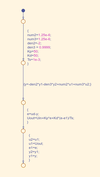 Chart为Stateflow模块,里面实现了系统建模与PD迭代控制律。Chart内部流程图如图: