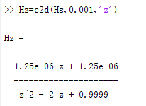 当采样周期Ts=0.001时,其离散化传递函数为: