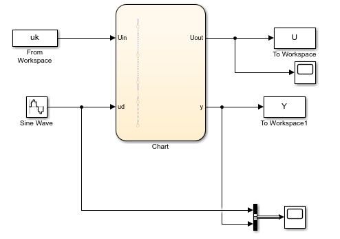 这里Sine Wave是输入参考信号。Y为保存到工作空间的系统输出。uk为从Matlab的工作空间读取的上次迭代控制量。U为保存到工作空间的本次迭代控制输出量,故有关系式:
