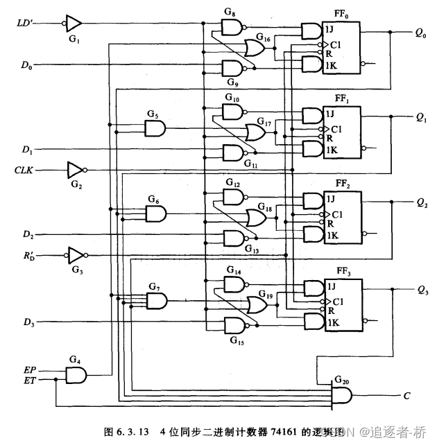 只有低位片进位的时候CLK才对高位片起作用进行计数。并行,同步电路