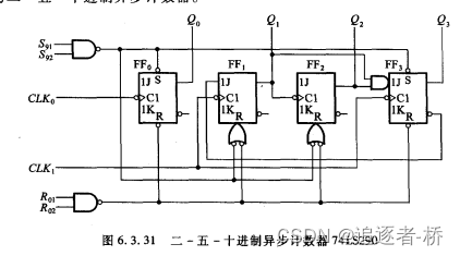 若将CLK1与Q0相连,同时CLK0为输入端、Q3为输出端,则得到十进制计数器(十分频器)
