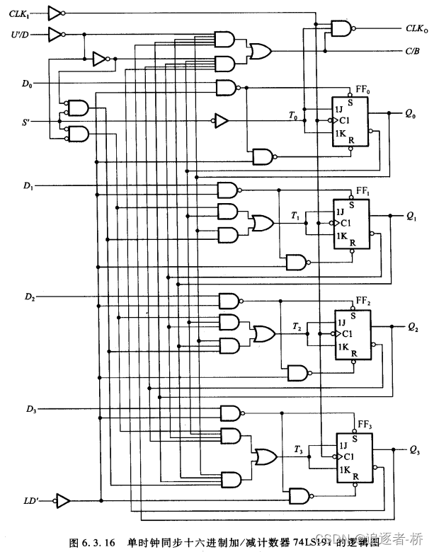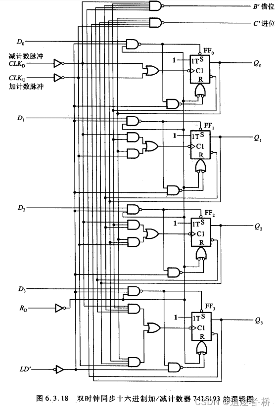 实际对应器件为:74LS193(采用T触发器,即T=1)