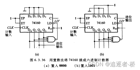 得CLK可以直接置入,当输出状态变为0101也就是6时,作为触发LD'的触发信号,将D0D1D2D3