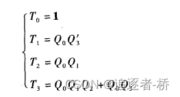 这里希望下一状态Q3*=0,则需要将T3=1,相对于1001来说,只需要译Q3Q0即可,因此得到T3=Q2Q1Q0+Q3Q0。