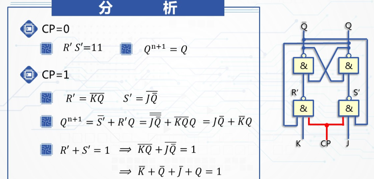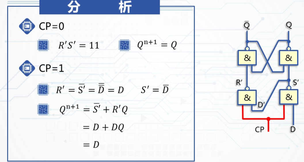 当cp等于0时触发器不变,cp等于1时与非门的作用相当于将输入变量变为反变量。