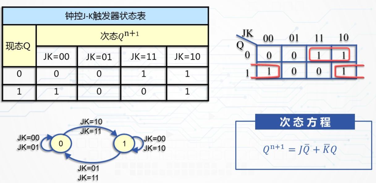 钟控JK触发器可以置零可以置一可以不变可以翻转,它添加了两根反馈线