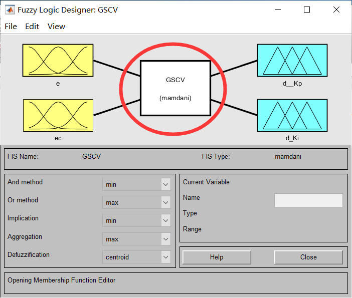 在这里,我们一般是用中间三角形的隶属函数,两边高斯型的隶属函数,对于这个框图,我们要了解这四个部分: