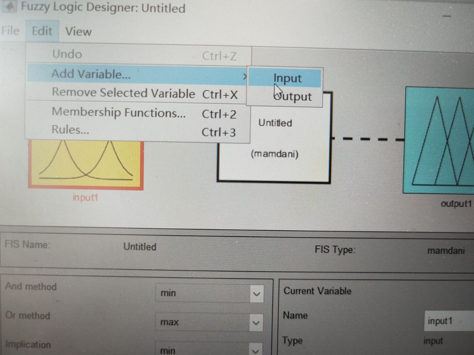 因此,我们在刚才打开的界面,点击左上角Add-Add variable-input增加一个输入,同理:Add-Add variable-output 增加一个输出。