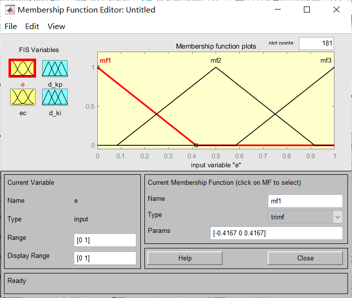我们知道,隶属函数是针对输入、输出的,所以我们要打开确定隶属函数窗口的方法也就是双击输入or输出,打开的界面如下: