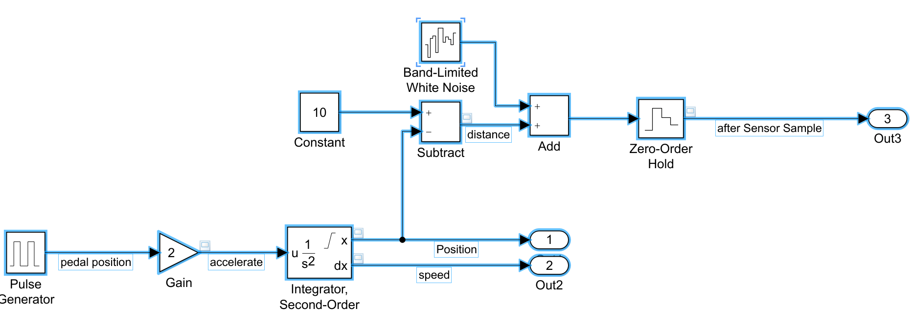 常量constant,减法器subtract,加法器add和零阶保持器Zero-Order Hold以及带限白噪声发生器Band-Limited White Noise。