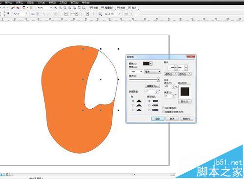 1、打开Colerdraw软件,先设定页面为75x55mm,在页面中央画一长方形线框16x45mm。选定一边为脸的中心线。然后用“贝赛尔线”工具描绘出半边的脸形线描稿。线粗设定为0.15mm。