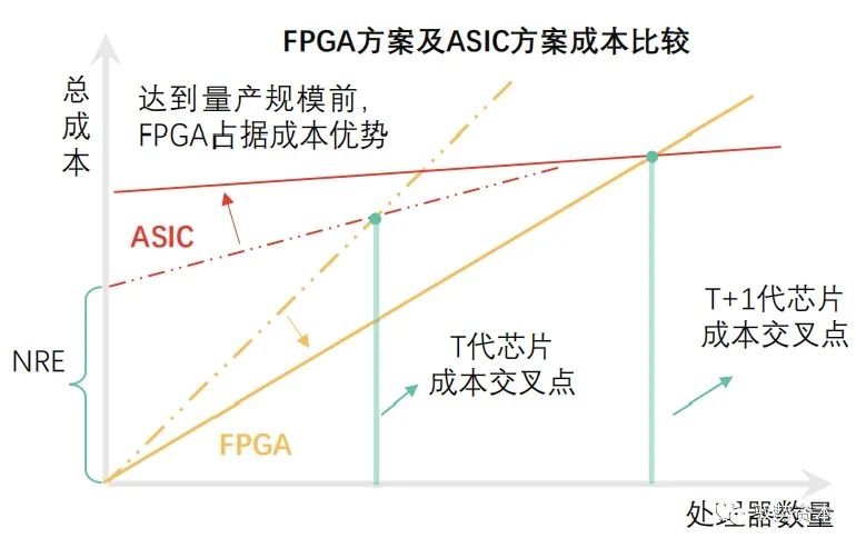 ASIC芯片专用度高,开发流程非重复成本(流片)极高,5G商用普及初期,FPGA可依托灵活性抢占市场,但规模化量产场景下,ASIC芯片更具竞争优势.